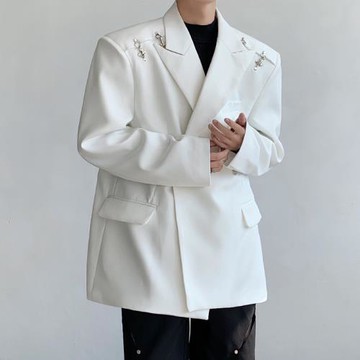 韓國慵懶風重工白色西裝男女高級感韓劇穿搭外套高街潮牌網紅西服
