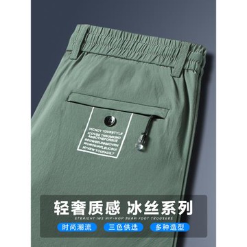 冰絲褲子男夏季薄款運動速干新款空調長褲彈力寬松直筒男士休閑褲