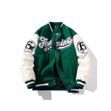 vintage美式棒球服男拼接刺繡復古開衫針織運動外套外貿男裝夾克