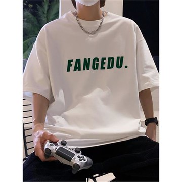 純棉短袖男款夏季排汗速干五分袖t恤字母印花上衣寬松圓領體恤潮