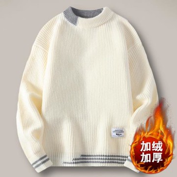 一體絨圓領毛衣男士秋冬款加絨衛衣保暖毛線衣套頭軟糯打底針織衫
