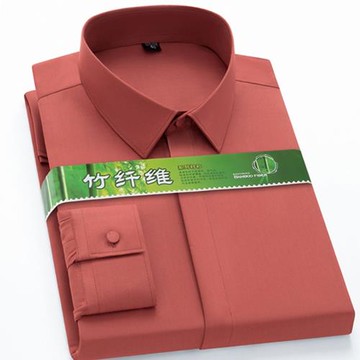 2026春季竹纖維楓葉紅襯衫男長袖商務休閑職業裝純色男士襯衣寸衫
