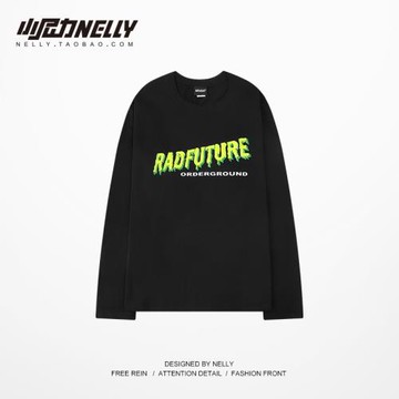ins秋季圓領體恤日系復古寬松長袖T恤男潮創意涂鴉TEE打底衫