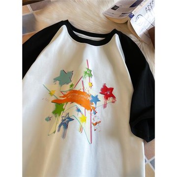星星短袖t恤男夏季潮流新款男裝衣服美式重磅半袖體恤男生上衣薄