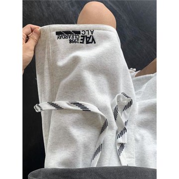 淺色運動褲子女夏季寬松bf慵懶風胖mm大碼顯瘦直筒闊腿休閑衛褲潮