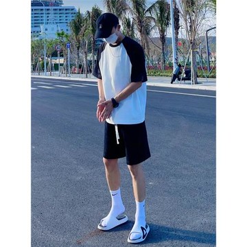UNCLEBLUE 新款高品質男士FOG配色重磅265g撞色插肩袖T恤短袖T