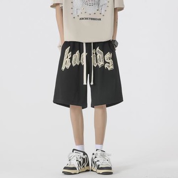 ASKYURSELF梵文字母休閑運動五分褲高街潮牌男女寬松抽繩網眼短褲