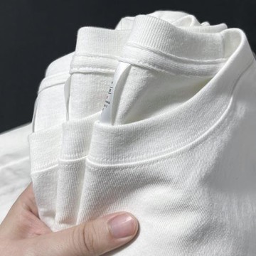 210g日本重磅t恤純棉圓領寬松基礎款短袖打底衫無縫厚實男女白Tee