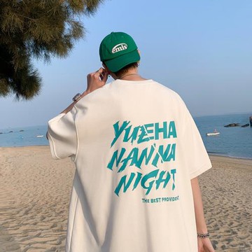 高克重磅t恤男ins港風潮流情侶短袖設計感字母印花上衣半袖體恤夏