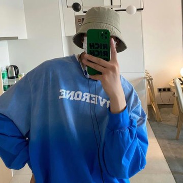漸變色圓領衛衣男春秋季水洗做舊長袖打底衫ins港風復古寬松上衣