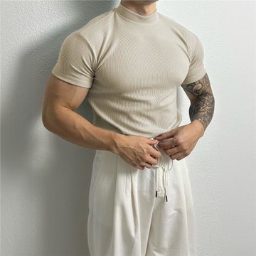 Neck Collar Casual Solid Sports T-Shirt縮領休閑純色運動T恤男