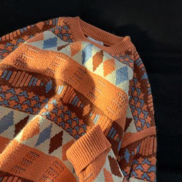 圓領美式復古秋冬款長袖套頭毛衣