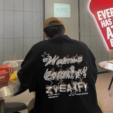 重磅圓領衛衣男士春秋款美式高街潮牌印花打底衫oversize大碼上衣