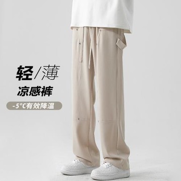 冰絲褲子男設計感鉚釘美式伐木褲夏季薄款寬松闊腿褲垂感休閑長褲