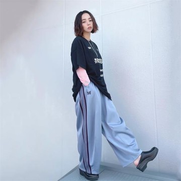 Needles track蝴蝶刺繡直筒胖胖褲歐美os寬版燈籠休閑運動闊腿褲