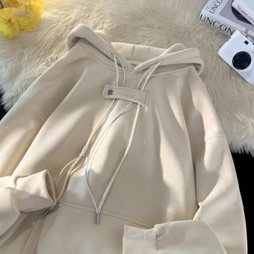 日系復古銀狐絨360g重磅衛衣女秋季寬松慵懶風情侶裝加絨開衫外套