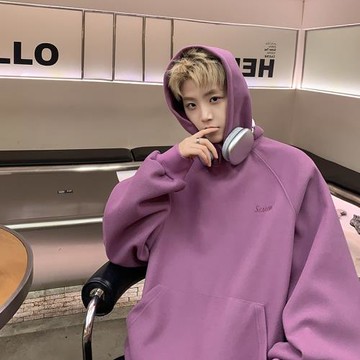 重工字母刺繡~連帽衛衣男重磅加絨高街美式秋冬寬松百搭潮流男生