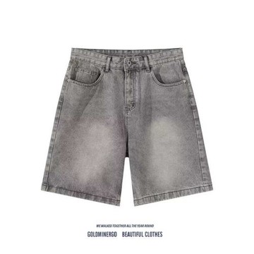 美式復古水洗做舊牛仔短褲男夏季寬松直筒五分褲潮牌街頭休閑中褲