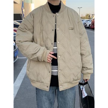 秋冬季日系高街菱格棒球棉服外套男韓版復古寬松休閑加厚保暖棉衣