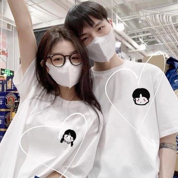 2022夏季新款小眾設計感重磅厚實情侶裝圓領卡通簡約百搭情侶短袖