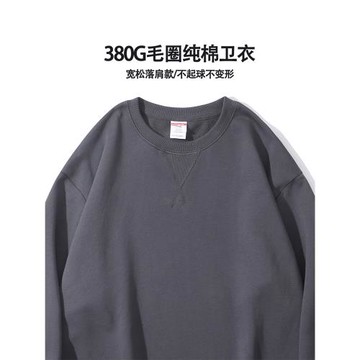 莫蘭迪380g重磅毛圈布圓領衛衣暗夜灰純棉純色內搭厚實上衣男女款