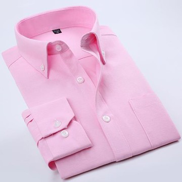 春季小領牛津紡襯衫男長袖商務職業工裝淺粉色襯衣西裝打底衫扣領