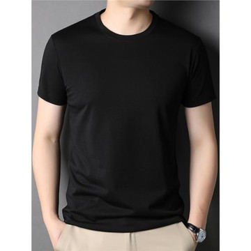 桑蠶絲圓領t恤男夏季絲光棉配西服的園領子打底衫休閑西裝內襯