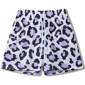 美式豹紋短褲男子冰絲速干寬松休閑潮牌五分褲訓練健身運動籃球褲
