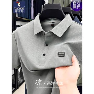 啄木鳥冰絲短袖t恤男2025夏季新款中年爸爸裝高端無痕翻領polo衫