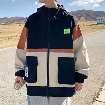 夾克外套男春秋款美式拼接撞色運動上衣高級感潮牌帥氣男生沖鋒衣