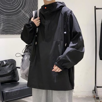 套頭外套男春秋山系戶外機能沖鋒衣美式復古寬松oversize運動夾克