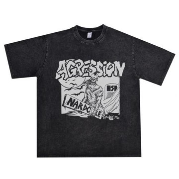 西班牙激流技術鞭撻金屬搖滾組合AGGRESSION樂隊水洗做舊T恤男女