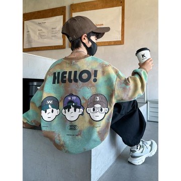 男童春季迷彩衛衣2025新款男孩帥氣炸街中大童卡通印花圓領上衣潮