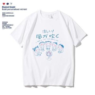 夏季新款日系卡通貓咪印花短袖t恤男港風學生韓版潮流半袖體恤