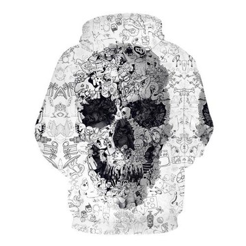 2021新款白色骷髏恐怖搞笑長袖男裝帥氣3D數碼印花套頭連帽衛衣潮