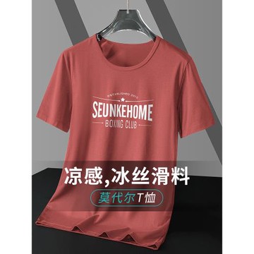 莫代爾冰絲短袖t恤男士涼感速干半袖圓領夏季上衣服字母印花體恤