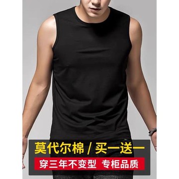 莫代爾背心男夏季薄款冰絲無袖t恤純色健身跨欄運動坎肩籃球汗衫