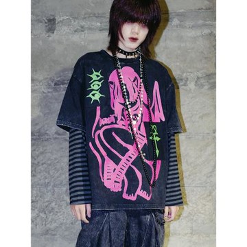 別鬧BIZZCUT/魔女憂愁/搖滾朋克印花二次元亞文化上衣長袖T恤套裝