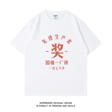 夏季潮牌復古先進生產者國潮t恤情侶短袖學生純棉寬松潮體恤衫