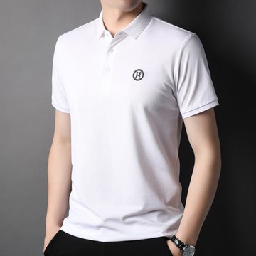 2025夏季新款POLO衫男士絲光棉短袖t恤中年桑蠶絲男裝半袖體恤衫