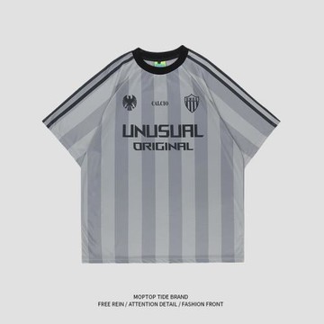 WHXS美式潮牌條紋足球運動情侶短袖T恤男女氛圍感休閑上衣ins