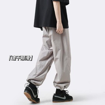 褲子男士夏季薄款冰絲速干傘兵褲大碼闊腿長褲美式高街痞帥休閑褲