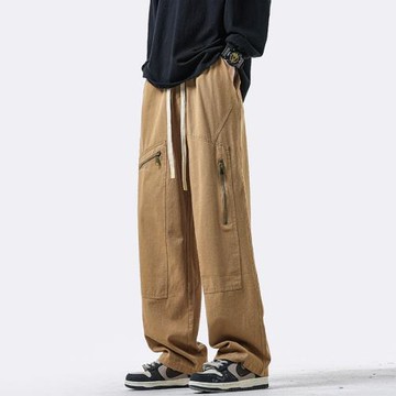 卡其色褲子男美式復古vibe伐木褲春秋直筒寬松闊腿褲設計感休閑褲