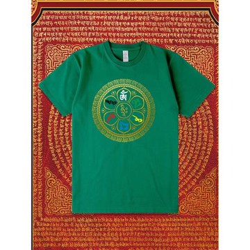 六字真言新款夏季高端純棉短袖六字大明咒印花男女裝寬松佛家T恤