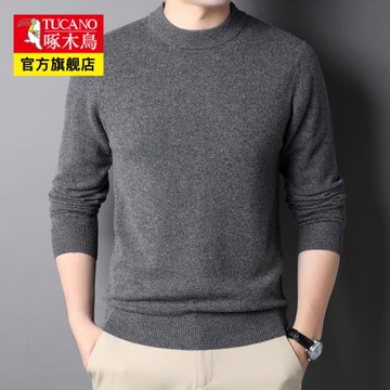 啄木鳥山羊絨毛衣男冬季休閑時尚羊毛針織衫商務修身圓領打底衫男