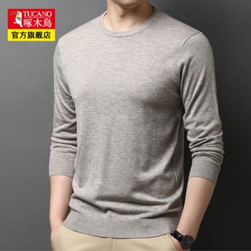 啄木鳥秋季圓領純色毛衣薄款男士長袖打底衫休閑時尚內搭秋衣男裝
