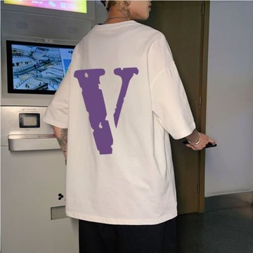 V字休閑短袖T恤男潮牌潮流ins情侶上衣服美式高街夏季寬松五分袖