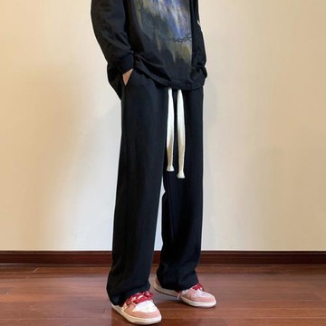 冰絲褲男士夏季薄款速干運動褲垂感寬松闊腿褲休閑長褲黑色拖地褲