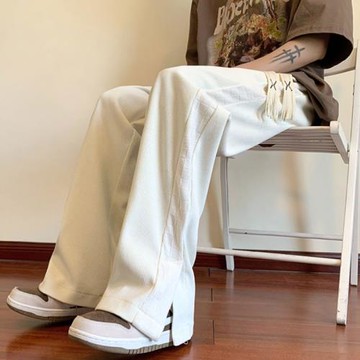 白色褲子美式高街男春秋薄款運動休閑褲高個子大碼抽繩寬松直筒褲