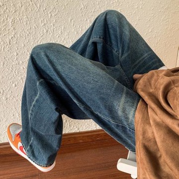 日春多元化 牛仔褲男款2023復古做舊水洗寬松直筒垂感ins闊腿長褲